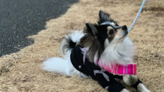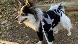 千葉 犬とお出かけ・散歩 オーダーメイドの犬服作ってもらって手賀沼を夕散歩